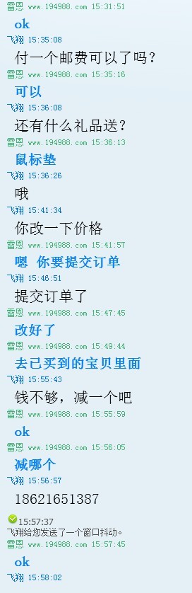 收貨人: 魏鳳燕 ,13761857798 , 上海市 浦東新區(qū) 民雪路268號 ,201209 QQ:752819395 旺旺:feixiang20112011